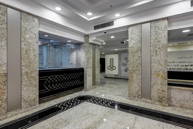 Scope involved full interior finishing works including flooring, wall cladding, ceilings, lighting fixtures, partitions, counters, and decorative elements. Executed under the supervision of Eng. Ibrahim Al Oraibi, the works were completed with attention to precision, privacy, and aesthetic harmony, creating a dignified and efficient environment for clients and staff.
